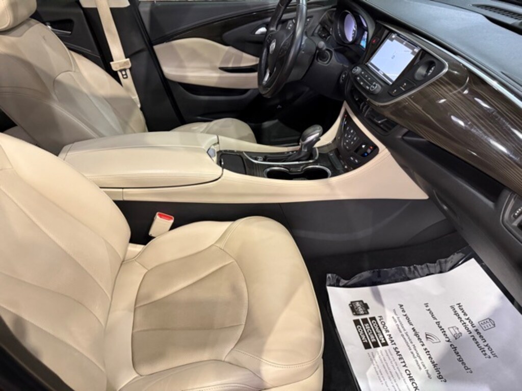 Preferred Equipment Group 1SL, 18" 10-Spoke Polished Aluminum Wheels, 3.50 Final Drive Axle Ratio, 4-Wheel Disc Brakes, 6 Speakers, 6-Speaker Audio System Feature, ABS brakes, Air Conditioning, Alloy wheels, AM/FM radio: SiriusXM, Apple CarPlay/Android Auto, Auto-dimming door mirrors, Auto-dimming Rear-View mirror, Automatic temperature control, Brake assist, Bumpers: body-color, Compass, Delay-off headlights, Driver 8-Way Power Seat Adjuster, Driver door bin, Driver vanity mirror, Dual front impact airbags, Dual front side impact airbags, Electronic Stability Control, Emergency communication system: OnStar and Buick connected services capable, Exterior Parking Camera Rear, Four wheel independent suspension, Front anti-roll bar, Front Bucket Seats, Front Center Armrest, Front dual zone A/C, Front fog lights, Front Passenger 8-Way Power Seat Adjuster, Front reading lights, Fully automatic headlights, Garage door transmitter, Heated door mirrors, Heated Driver & Front Passenger Seats, Heated front seats, Heated rear seats, Heated steering wheel, High-Intensity Discharge Headlights, Illuminated entry, Knee airbag, Leather Shift Knob, Low tire pressure warning, Memory seat, Occupant sensing airbag, Outside temperature display, Overhead airbag, Overhead console, Panic alarm, Passenger door bin, Passenger vanity mirror, Perforated Leather-Appointed Seat Trim, Power door mirrors, Power driver seat, Power Liftgate, Power Panoramic Tilt-Sliding Moonroof, Power passenger seat, Power steering, Power windows, Radio data system, Radio: Buick Infotainment System AM/FM Stereo, Radio: Buick Infotainment System AM/FM w/Nav, Rear air conditioning, Rear anti-roll bar, Rear reading lights, Rear seat center armrest, Rear side impact airbag, Rear window defroster, Rear window wiper, Remote keyless entry, Roof rack: rails only, Security system, SiriusXM Radio, Speed control, Speed-sensing steering, Split folding rear seat, Spoiler, Steering wheel mounted audio controls, Tachometer, Telescoping steering wheel, Tilt steering wheel, Traction control, Trip computer, Turn signal indicator mirrors, and Variably intermittent wipers.