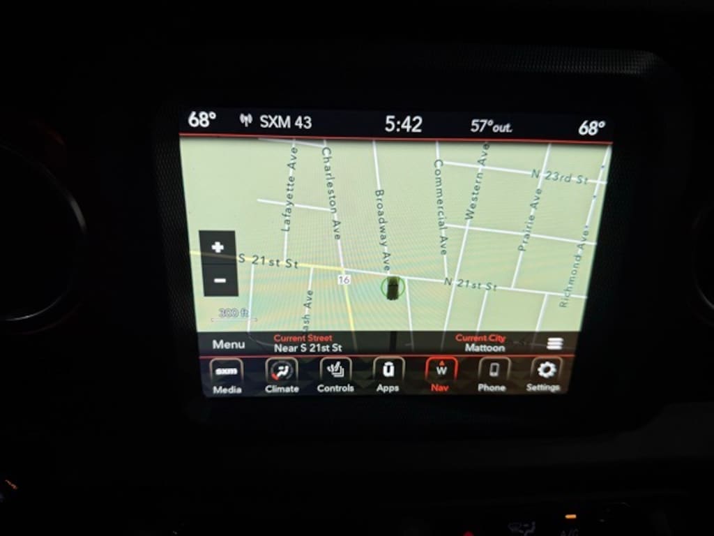 Cold Weather Group (Heated Front Seats and Heated Steering Wheel), Quick Order Package 25R Rubicon, 4-Wheel Disc Brakes, 4.10 Rear Axle Ratio, 9 Speakers, ABS brakes, Air Conditioning, Alloy wheels, AM/FM radio: SiriusXM, Apple CarPlay/Android Auto, Auto-dimming Rear-View mirror, Automatic temperature control, Aux Battery, Black 3-Piece Hard Top, Brake assist, Compass, Delay-off headlights, Driver door bin, Driver vanity mirror, Dual front impact airbags, Dual front side impact airbags, Electronic Stability Control, Emergency communication system: SiriusXM Guardian, Engine Oil Cooler, Freedom Panel Storage Bag, Front anti-roll bar, Front Bucket Seats, Front Center Armrest w/Storage, Front Differential Electronic Lock w/Axle Disconnect, Front dual zone A/C, Front fog lights, Front License Plate Bracket, Front reading lights, Fully automatic headlights, Garage door transmitter, Heated door mirrors, Illuminated entry, Integrated roll-over protection, Low tire pressure warning, MOPAR All-Weather Floor Mats, Navigation System, No Soft Top, Non-Lock Fuel Cap w/o Discriminator, Occupant sensing airbag, Outside temperature display, Panic alarm, ParkView Rear Back-Up Camera, Passenger door bin, Passenger vanity mirror, Performance Suspension, Power door mirrors, Power steering, Power windows, Premium Cloth Low-Back Bucket Seats, Radio data system, Radio: Uconnect 4C Nav w/8.4" Display, Rear anti-roll bar, Rear reading lights, Rear Window Defroster, Rear Window Wiper/Washer, Remote keyless entry, Security system, Speed control, Split folding rear seat, Steering wheel mounted audio controls, Stop-Start Dual Battery System, Tachometer, Telescoping steering wheel, Tilt steering wheel, Traction control, Trip computer, Variably intermittent wipers, Voltmeter, and Wheels: 17" x 7.5" Machined/Painted Black.